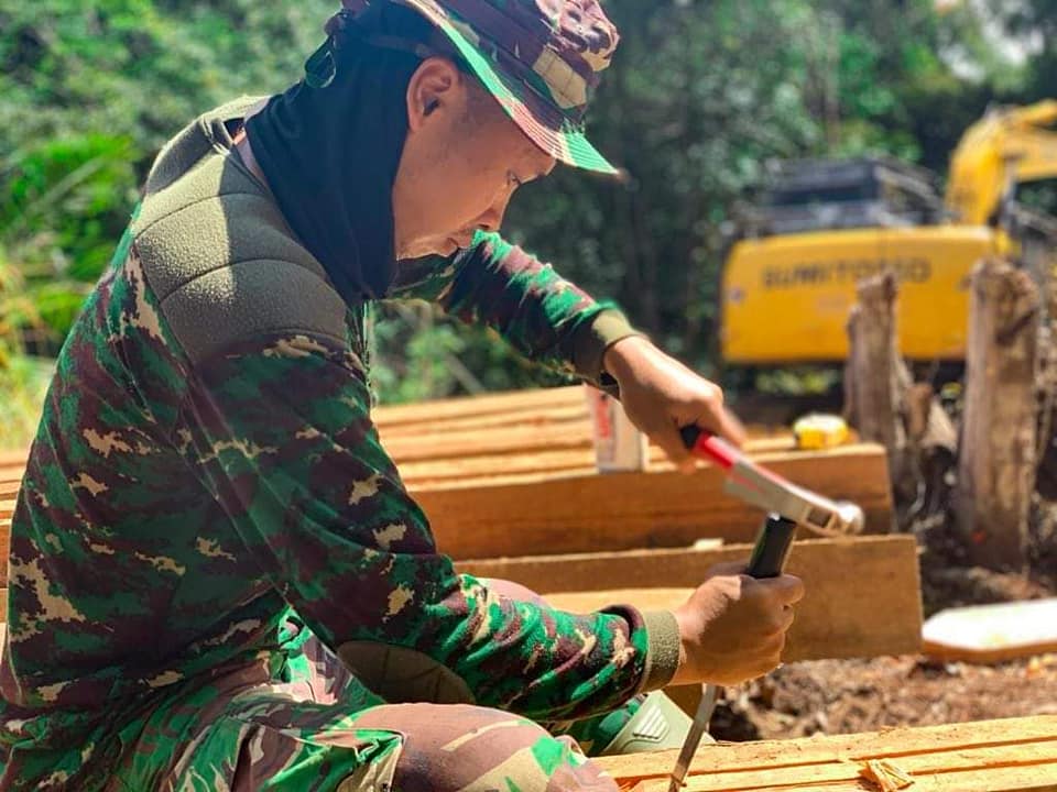 Sintang – Satgas TMMD Ke 112 Kodim 1205/Sintang terus persiapkan tiang – tiang untuk jembatan, siantaranya, pembuatan Kloning dan juga pembuatan sambungan tiang jembatan di Desa Ampar Bedang, Kec. Binjai Hulu, Sintang, Selasa (21/09/2011).