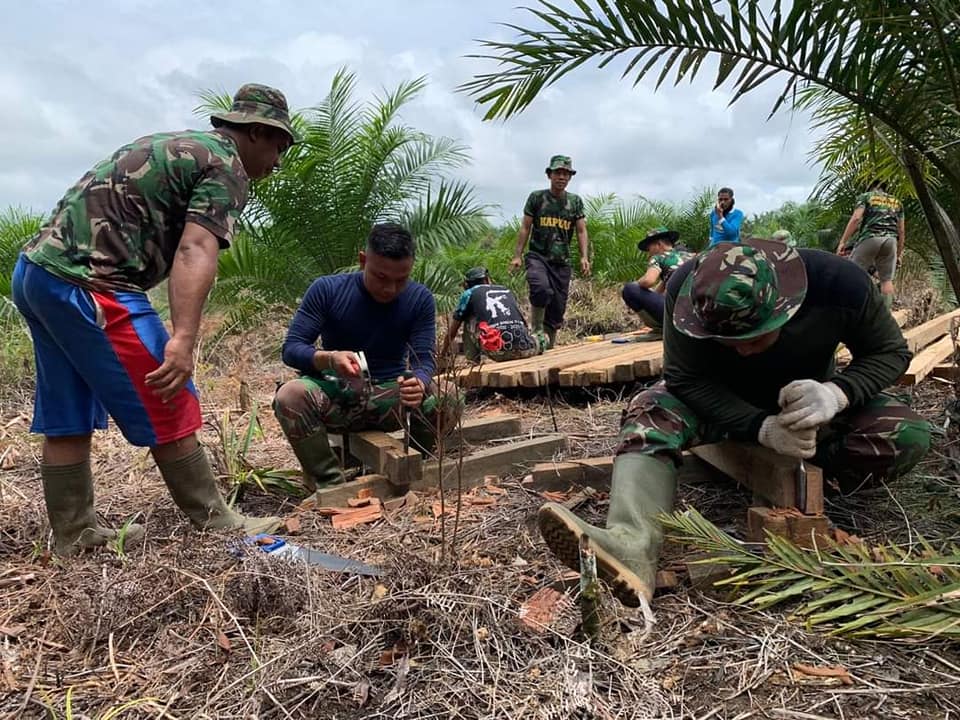 Sintang – Anggota Satgas TMMD 112 Kodim 1205/Sintang mulai mempersiapkan bahan – bahan untuk pekerjaan pembangunan jembatan di sasaran TMMD Desa Ampar Bedang, Kecamatan Binjai Hulu, Sintang, Selasa (21/09/2021).