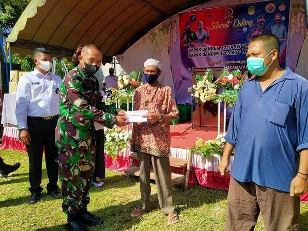 Dandim 1203/Ktp menghadiri kegiatan Bakti Sosial di Desa Manis Mata, Kecamatan Manis Mata, Kabupaten Ketapang. Dalam sambutanya, Dandim 1203/Ktp mengatakan bahwa, tujuan kegiatan bakti sosial ini adalah wujud kepedulian TNI khususnya Kodim 1203/Ktp, selain itu sebagai ajang silahturahmi dan menjalin sinergisitas antara TNI dengan masyarakat di tengah pandemi Covid-19 saat ini,”ucapnya.