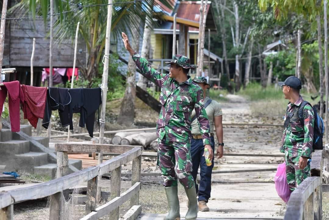 Sintang – Sebagai Aparat Komando Kewilayahan dimanapun bertugas yang menjadi kunci adalah senyum, sapa dan salam, seperti yang dilakukan oleh Kopda Riyan anggota Satgas TMMD 112 Kodim Sintang, tiap kali melewati perumahan warga di Dusun Betung Sari, Desa Ampar Bedang, Kecamatan Binjai Hulu, Sintang, Kamis (23/09/2021).