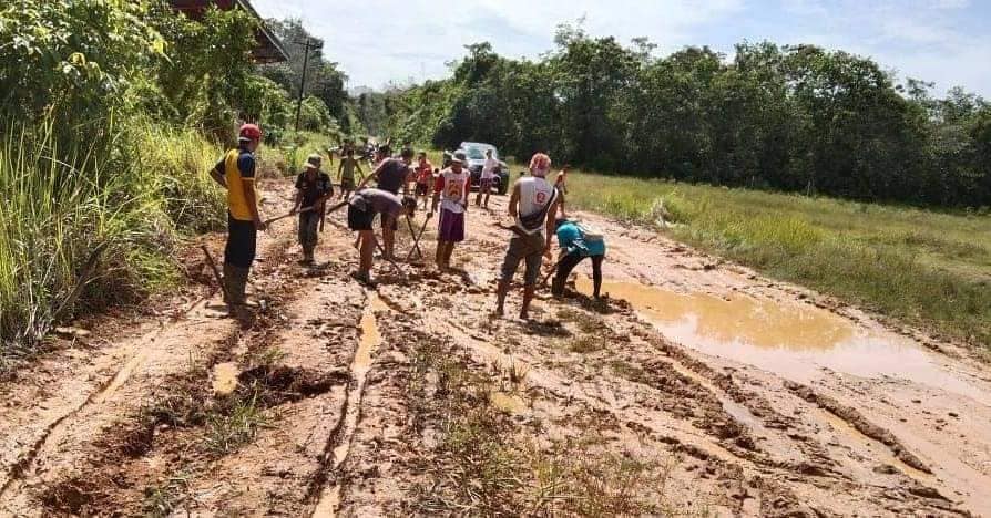 Dengan alat seadanya Babinsa bersama warga menimbun jalan yang rusak agar warga sekitar dapat melakukan aktifitasnya sehari-hari dengan lancar karena jalan yang rusak sudah ditimbun.