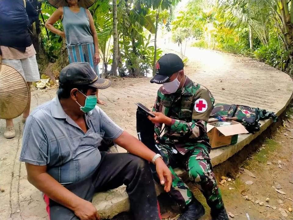 Serda Toni Indriyono Bersama dua rekannya saling bekerjasama dalam membantu pengobatan,mulai dari tensi dan pemberian obat, kebanyakan yang sakit demam,dan darah tinggi”, imbuhnya.