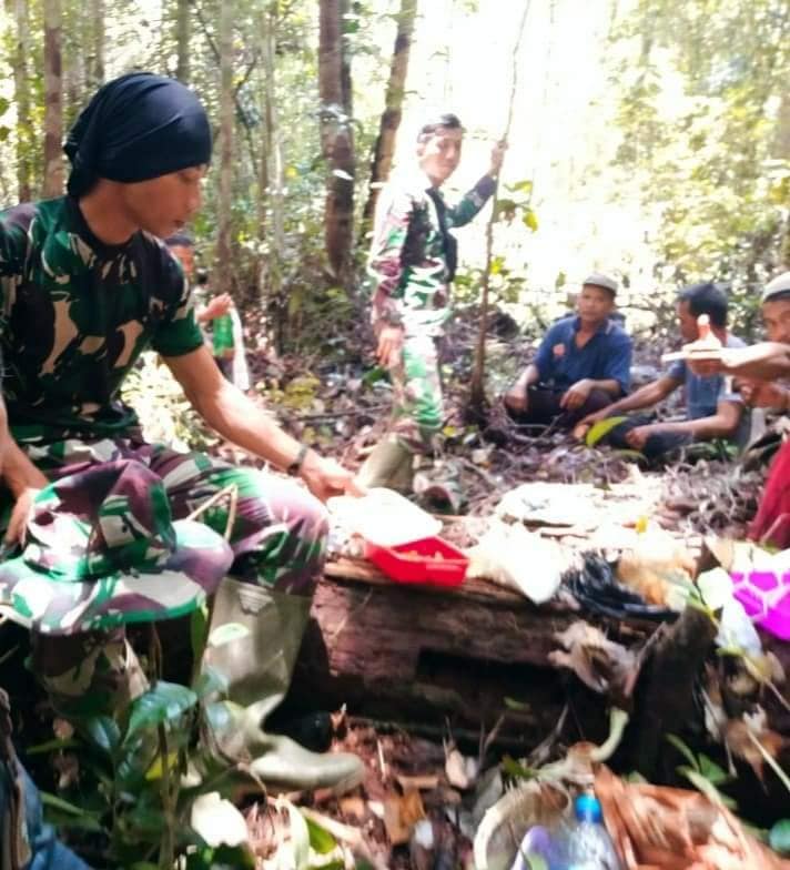 SINTANG – Warga Dusun Betung Sari yang di pimpin langsung oleh Kadus (Kepala Dusun) Betung Sari, ikut turun langsung ke lapangan untuk membantu anggota Satgas TMMD 112 Kodim 1205/Sintang, Kamis(30/09/2021).