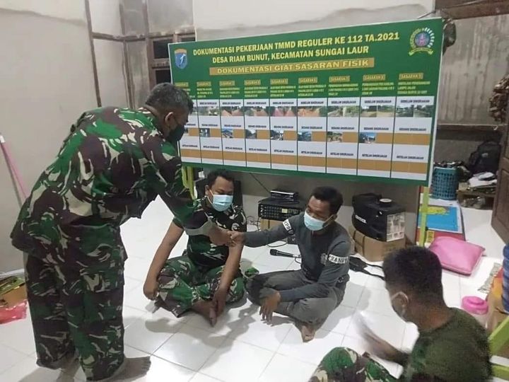 Ketapang – Bertempat di Posko TMMD Reguler Ke 112, Kodim 1203/Ktp, Di Desa Riam Bunut, Kecamatan Sei Laur Kabupaten Ketapang, personil satgas menerima suplemen vitamin untuk menunjang aktivitas kerja selama kegiatan TMMD berlangsung.