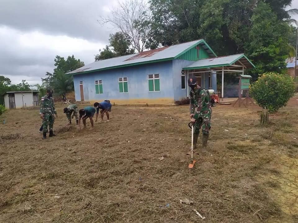 Pratu Hengki tornado beserta tiga rekannya saling bekerjasama dengan warga dalam membersihkan rumput mulai dari pemotongan dengan menggunakan mesin rumput dan membuang Sampah,serta tidak luput mensosialisasikan tentang kebersihan lingkungan dan menjaga jarak dalam berkaktivitas”, imbuhnya.