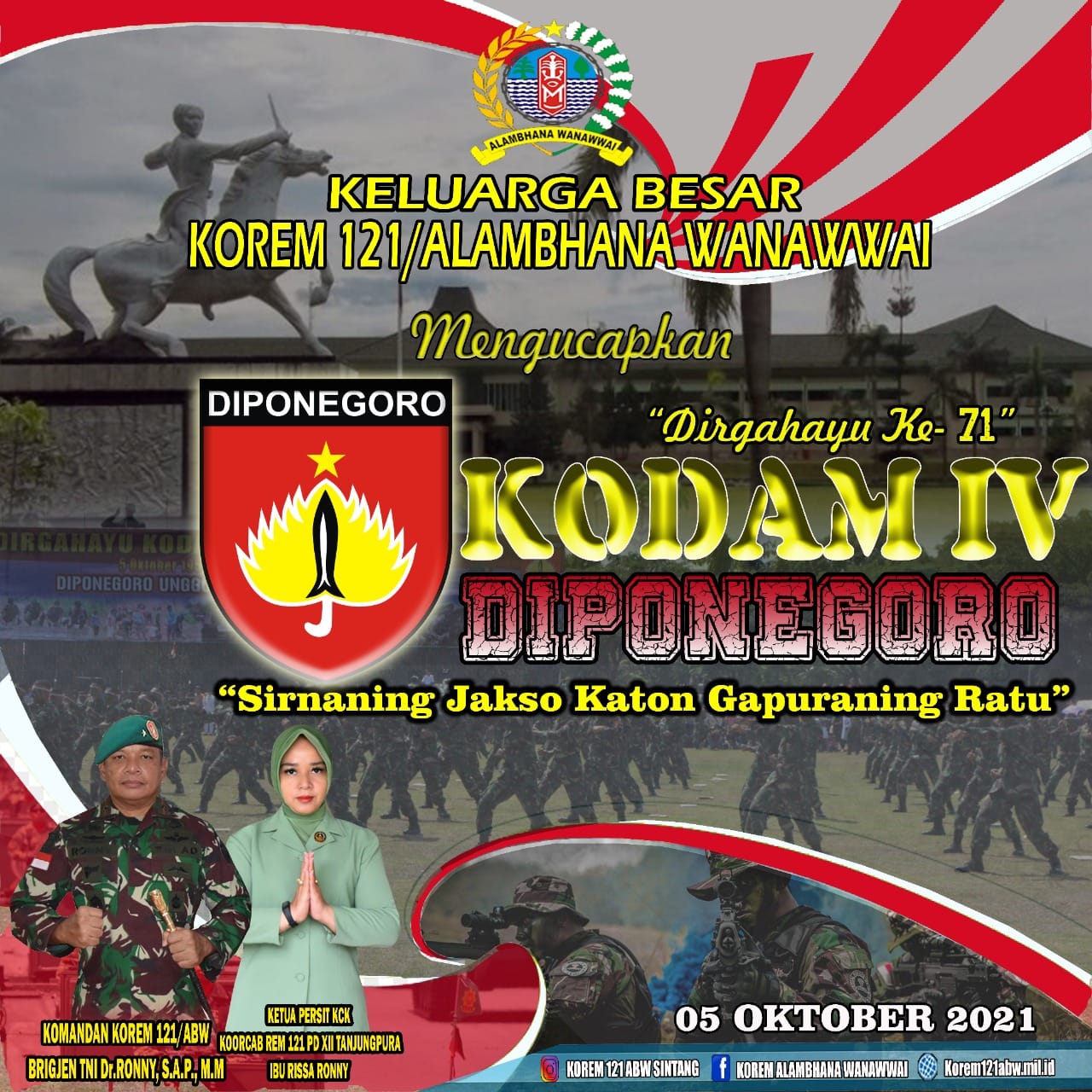 KELUARGA BESAR KOREM 121/ALAMBHANA WANAWWAI MENGUCAPKAN DIRGAHAYU KE 71 KODAM IV DIPONEGORO 5 Oktober 2021 oleh Redaksi Korem 121/abw