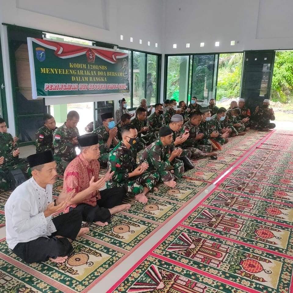 Sambas – Anggota Kodim 1208/sambas menggelar doa bersama dalam rangka Hari Ulang Tahun TNI Ke – 76 Tahun 2021, yang diselenggarakan di masjid Mujahidin Makodim 1208/Sambas yang beralamat di Desa Lumbang Kec. Sambas Kab. Sambas, Senin (04/10/2021).