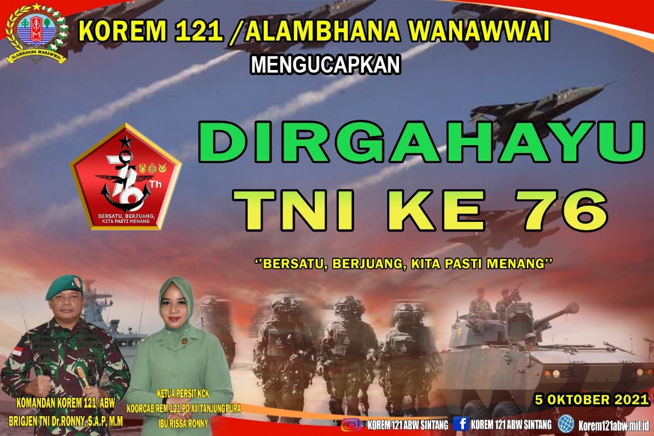 KOREM 121/ALAMBHANA WANAWWAI MENGUCAPKAN DIRGAHAYU TNI KE 76 “BERSATU, BERJUANG, KITA PASTI MENANG” 5 Oktober 2021 oleh Redaksi Korem 121/abw
