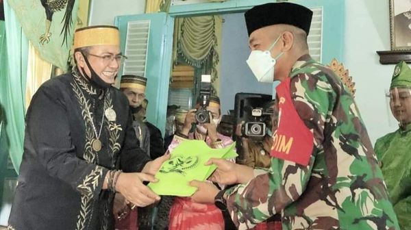 Mempawah – Komandan Kodim 1201 Mempawah Letkol Inf. Dwi Agung Prihanto menghadiri acara gelar adat Toana penganugrahan gelar kekerabatan dalam rangkaian Pagelaran Budaya Wisata tak Benda Indonesia yaitu Tradisi Robo-robo Tahun 2021, bertempat di Keraton Amantubillah, Kelurahan Terusan, Kecamatan Mempawah Hilir, Kabupaten Mempawah, Selasa Malam (5/10/2021).