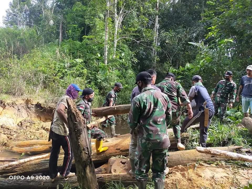 Akibat hujan deras air yang mengalir dari pegunungan Arus yang deras menerjang jembatan kayu sehingga terjadi kerusakan, jembatan ini akses penghubung antar desa, kegiatan ini merupakan bentuk kepedulian dan rasa memiliki untuk memperbaiki Jembatan kayu yang rusak akibat di terjang arus air,maka dari itu anggota satgas kami membantu warga untuk memperbaiki Jembatan kayu ini,harapan nya dengan perbaikan jembatan ini warga bisa melintas dan nyaman untuk di lewati, sehingga mereka bisa beraktivitas dengan lancar.