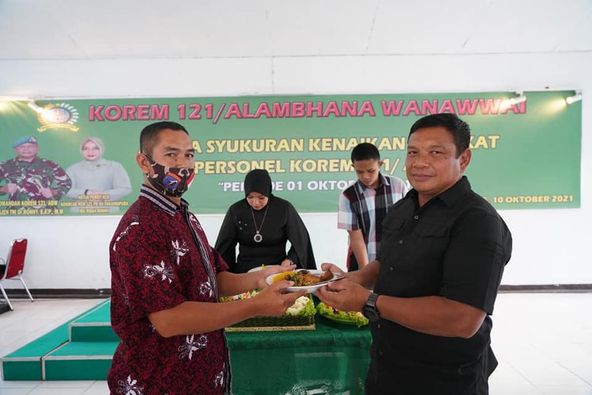 Sintang, Sebagai wujud rasa syukur kepada Tuhan Yang Maha Esa atas kenaikan pangkat periode 1 Oktober 2021, diadakan acara syukuran yang dilaksanakan di pendopo Korem 121/Abw jln Pangeran Muda no 1 Sintang, Minggu, 10/10/21