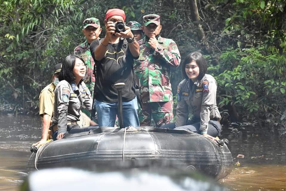 Dengan menggunakan Speed Boat, Kapendam bersama anggota menyusuri Sungai dan hutan dikarenakan akses jalan darat menuju ke sasaran TMMD sedang tidak bisa dilewati karena banjir yang masih menggenangi lokasi TMMD tersebut.