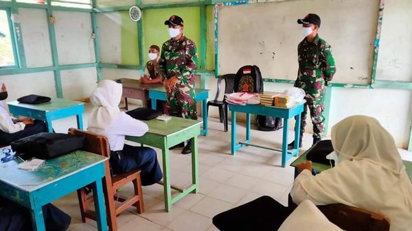 Kami Satgas Selalu berupaya untuk mendisiplinkan warga khususnya anak-anak sekolah Mts yang ada di perbatasan dengan memberikan bantuan 200 masker serta memberikan sargal berupa 10 Alquran,9 buku Juzama dan 5 baju kaos ,ini merupakan bentuk kepedulian kita terhadap anak-anak dalam mencari Ilmu sebagai generasi penerus bangsa kedepannya.