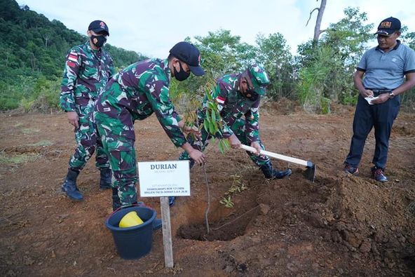 Kapuas Hulu, Saat kunjungan kerja ke daerah perbatasan Indonesia Malaysia, Danrem 121/ABW Brigjen TNI Dr.Ronny,S.A.P., M.M menyempatkan melaksanakan penanaman pohon di Agro Wisata Alam Lembah Bukit Semugang, Kecamatan Badau, Kapuas Hulu, Kalimantan Barat. Kamis,(21/10/2021).
