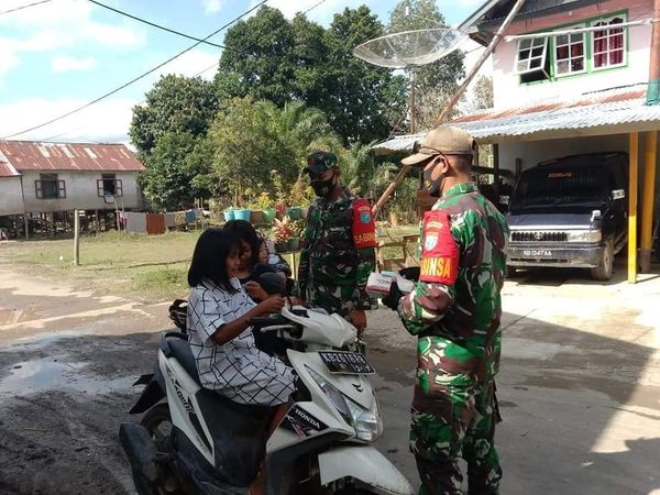 Sintang – Menjaga dan meningkatkan kesadaran masyarakat akan pentingnya protokol kesehatan dalam kehidupan sehari-hari guna memutus rantai penyebaran Covid-19, tak lepas dari peran aktif aparat teritorial dengan aksi nyatanya di wilayah binaan.