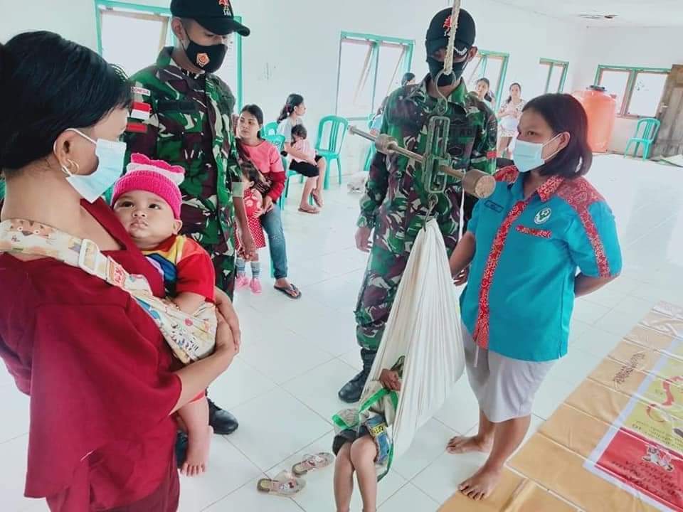 Setiap bulan anggota satgas kami membantu tenaga medis Puskesmas melaksanakan Posyandu secara rutin, dengan tujuan untuk menjaga kesehatan dan memberikan pelayanan khusus bagi balita dan ibu-ibu yang menyusui di perbatasan.