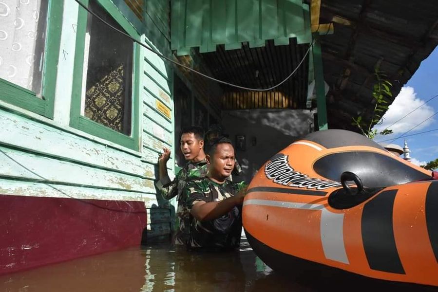 Sintang – Banjir yang terjadi di Kabupaten Sintang juga turut merendam Asrama TNI yang berada di kelurahan Alai, air masuk kedalam rumah dengan ketinggian bervariasi hingga pinggang orang dewasa.