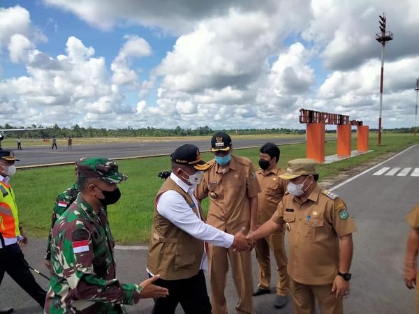 Setibanya di Sintang Letjen TNI Ganif Warsito disambut oleh Bupati Sintang dr.H.Jarot Winarno M.Med.Ph, Kasi Ops Kesrem 121/Abw Kol inf Iwan Purwanto, Dandim 1205/Sintang Letkol Inf Kukuh Suharwiyono, Kapolres Sintang AKBP Ventie Bernard Musak., S.I.K.,M.I.K, Sekda Kabupaten Sintang Dra. Yosepha Hasnah M.Si, Bupati Sekadau Aron, S.H, Bupati Melawi H. Dadi Sunarya, Wakil Bupati Sanggau Yohanes Ontot, Danyon 642/KPS Letkol Inf. Alim Mustofa, Kepala BMKG Sintang, Supriadi, BPBD Sintang BPK , Sugianto, Kepala Basarnas Provinsi BPK Erik, Kapolres Melawi, AKBP Sigit Eliyanto Nurharjanto, S.I.K, Kepala BPBD Kab.Melawi, Drs. Syafarudin, M.M, Kapolsek Tebelian Ipda J.E.Kusuma, Kabandara Tebelian Patah Atabri, Para Pimpinan Organisasi Perangkat Daerah (OPD) Kab.Sintang.