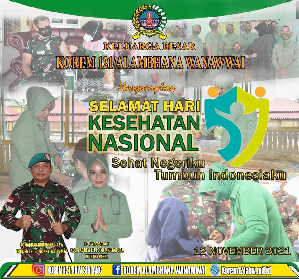 KELUARGA BESAR KOREM 121/ABW MENGUCAPKAN SELAMAT HARI KESEHATAN NASIONAL “SEHAT NEGERIKU, TUMBUH BANGSAKU” 13 November 2021 oleh Redaksi Korem 121/abw