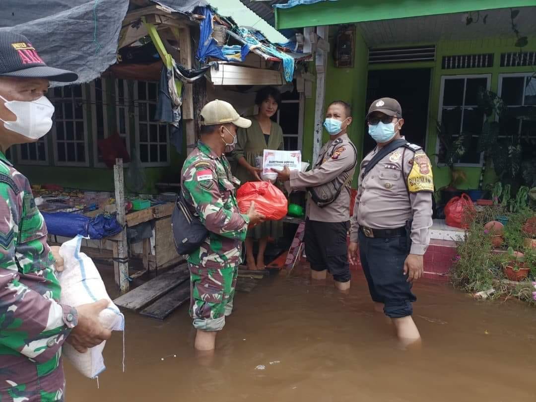 Babinsa Koramil 07/Tayan Hilir Sertu Gunjam menyerahkan bantuan sembako kepada masyarakat Sebanyak 50 paket kepada korban banjir Yang berada di Dusun Pulau Tayan Timur, Desa Pulau Tayan Utara.