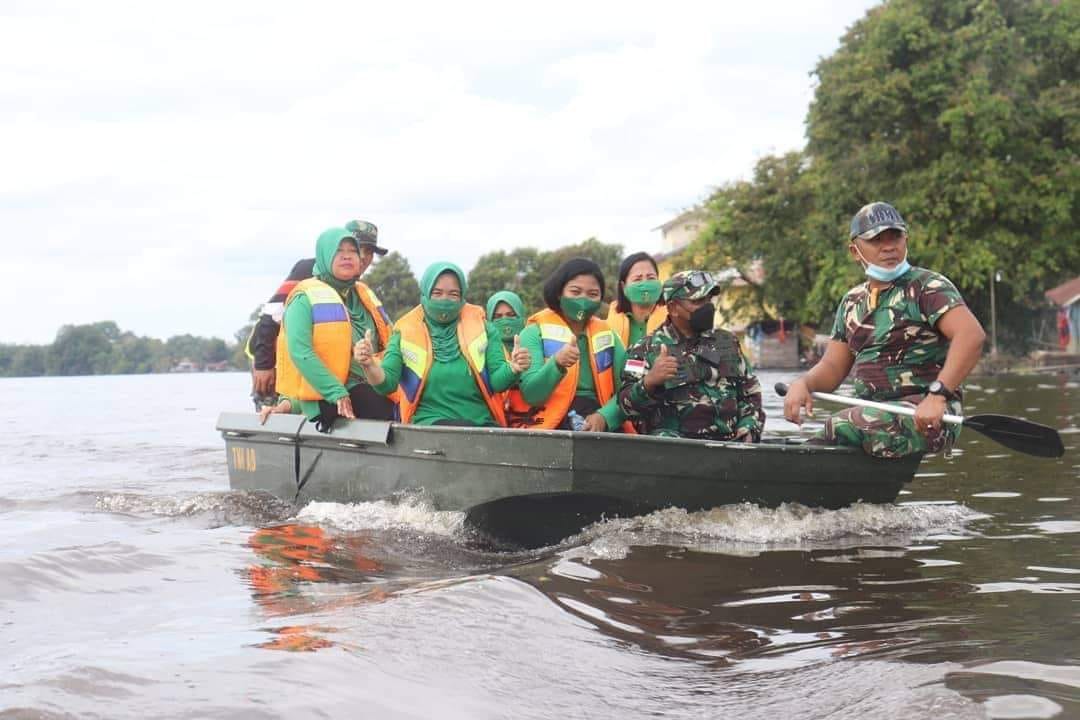 Kapuas Hulu – Dandim 1206/PSB Letkol Inf Jemi Oktis Oil S.I.P dan ketua Persit KCK Cab L DIM 1206/PSB Ny. Apt. Denik Bunga bersama personil Kodim serta pengurus Persit laksanakan pemberian bantuan 400 paket sembako kepada warga terdampak banjir di wilayah Kecamatan Semitau, Kabupaten Kapuas Hulu. Senin, (15/11/2021).