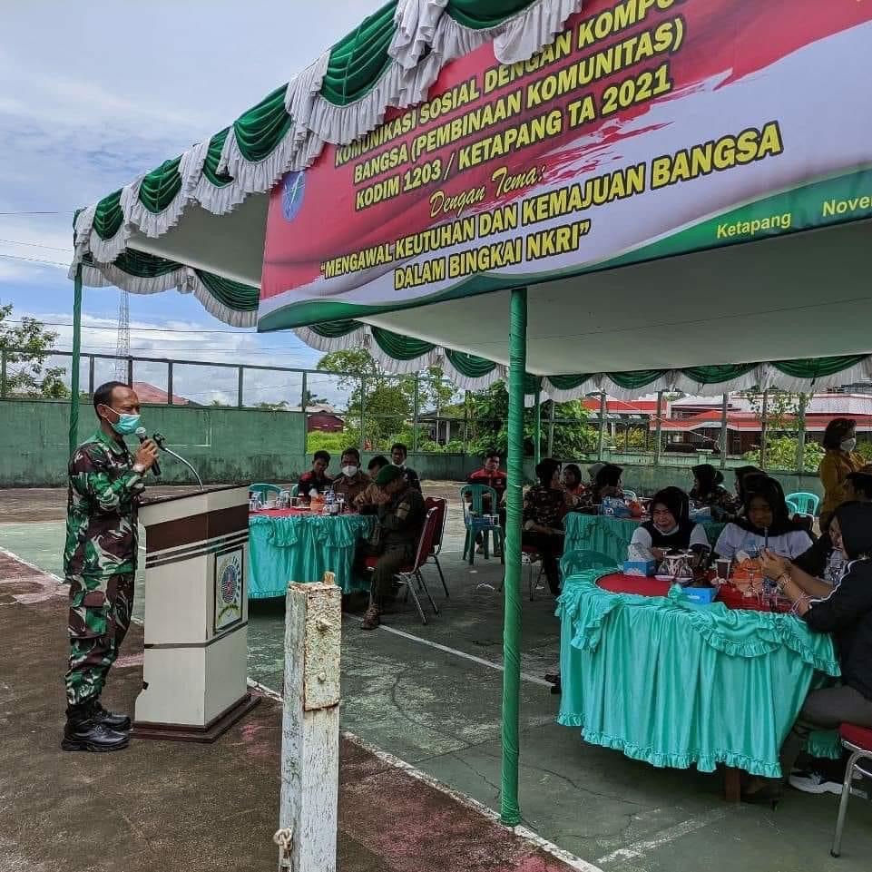 Ketapang – Dalam rangka meningkatkan hubungan yang baik dengan seluruh komponen bangsa lainnya khususnya para komunitas yang ada di wilayah, Kodim 1203/Ktp mengelar acara Komunikasi Sosial Dengan Komponen Bangsa (Pembinaan Komunitas) Semester II Ta 2021. yang berlangsung di Lapangan Tenis Kartika Tanjungpura Kodim 1203/Ktp Jl. Letjend S. Parman, Kec. Delta Pawan Kab. Kabupaten Ketapang, Selasa (16/11/2021).