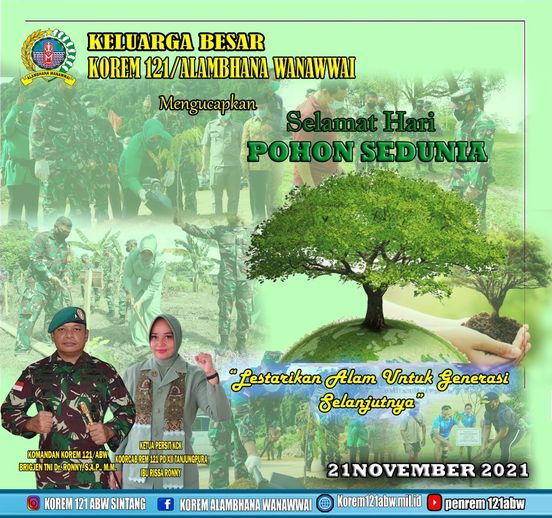 KELUARGA BESAR KOREM 121/ABW MENGUCAPKAN SELAMAT HARI POHON SEDUNIA 21 November 2021 oleh Redaksi Korem 121/abw