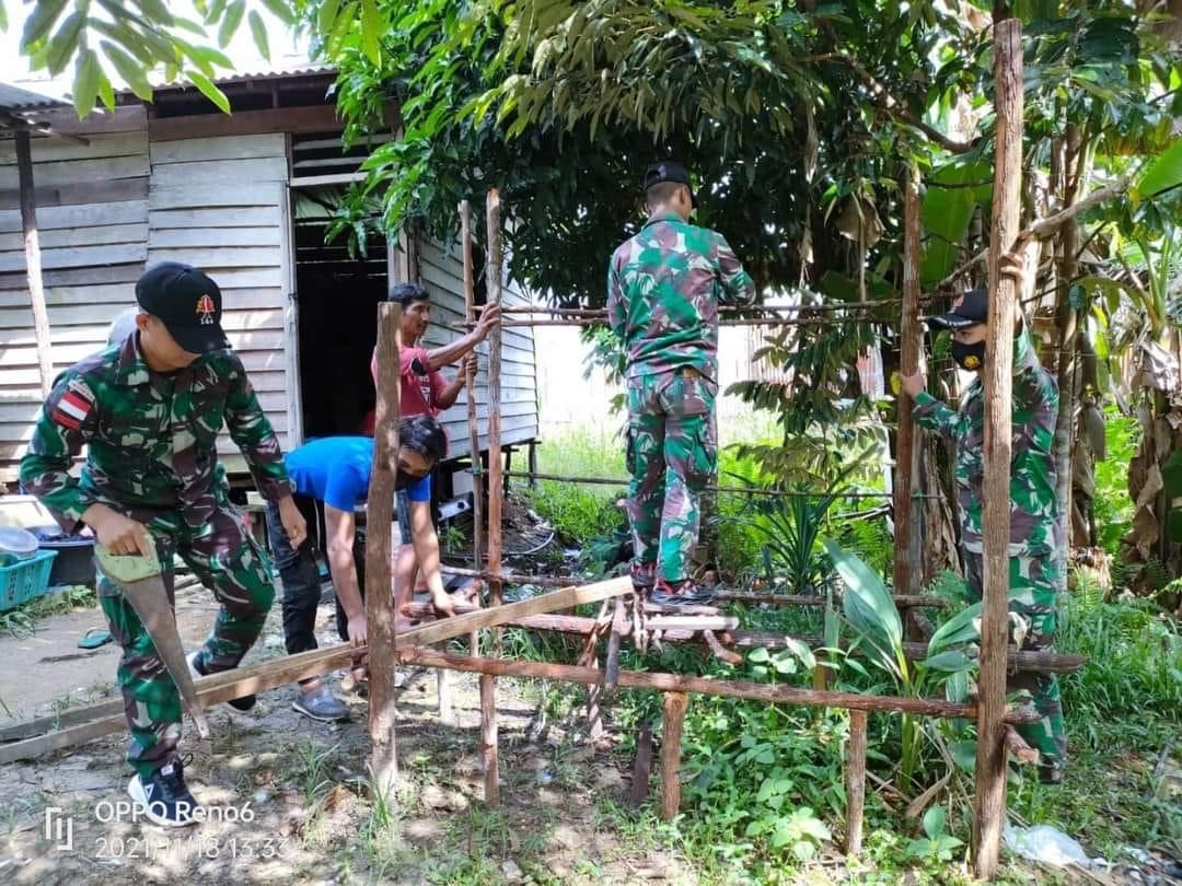 Pratu Rais dan dua rekannya”,kami membantu warga dalam pembuatan pos siskamling”, harapannya pos ini bisa tempat berkumpul bisa transit dalam kegiatan siskamling di waktu malam hari atau bisa berteduh sewaktu hujan”, imbuhnya.