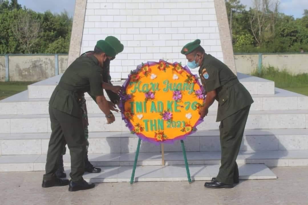 Kodim 1203/Ktp memperingati hari yang paling bersejarah bagi TNI AD tersebut menggelar Upacara Ziarah Rombongan di Taman Makam Pahlawan (TMP) Tanjungpura Jalan Brigjen Katamso Kel.Sukaharja Kec.Delta Pawan Kab.Ketapang,Selasa (14/10/2020).