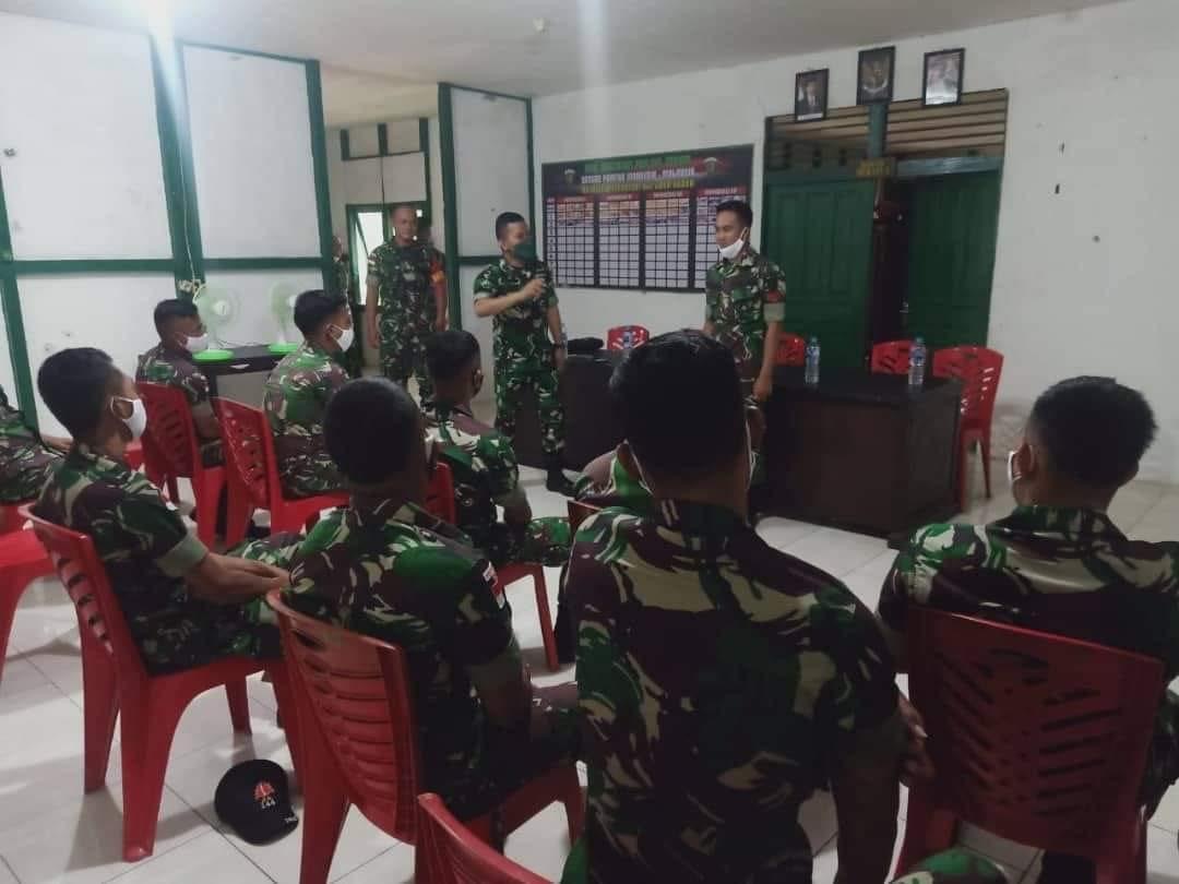 Sei Tekam,-Anggota Satgas Pamtas RI-Malaysia Yonif 144/JY menerima Dalwas dan Monitoring kondisi Psikologi Satgas Ops dalam Negeri di desa Sei Tekam Kecamatan Sekayam Kabupaten Sanggau