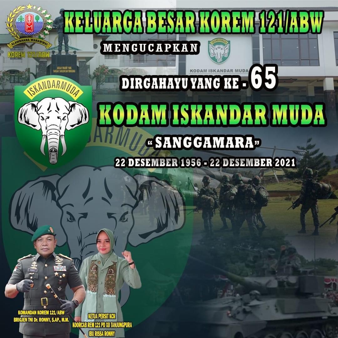 KELUARGA BESAR KOREM 121/ABW MENGUCAPKAN DIRGAHAYU KE – 65 KODAM ISKANDAR MUDA “SANGGAMARA” 22 Desember 2021 oleh Redaksi Korem 121/abw