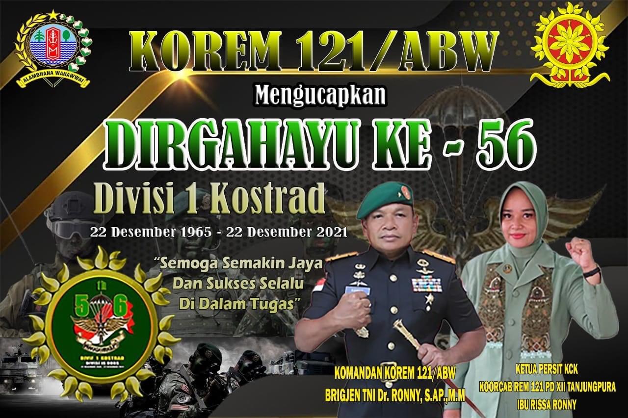 KOREM 121/ABW MENGUCAPKAN DIRGAHAYU KE – 56 DIVISI 1 KOSTRAD
