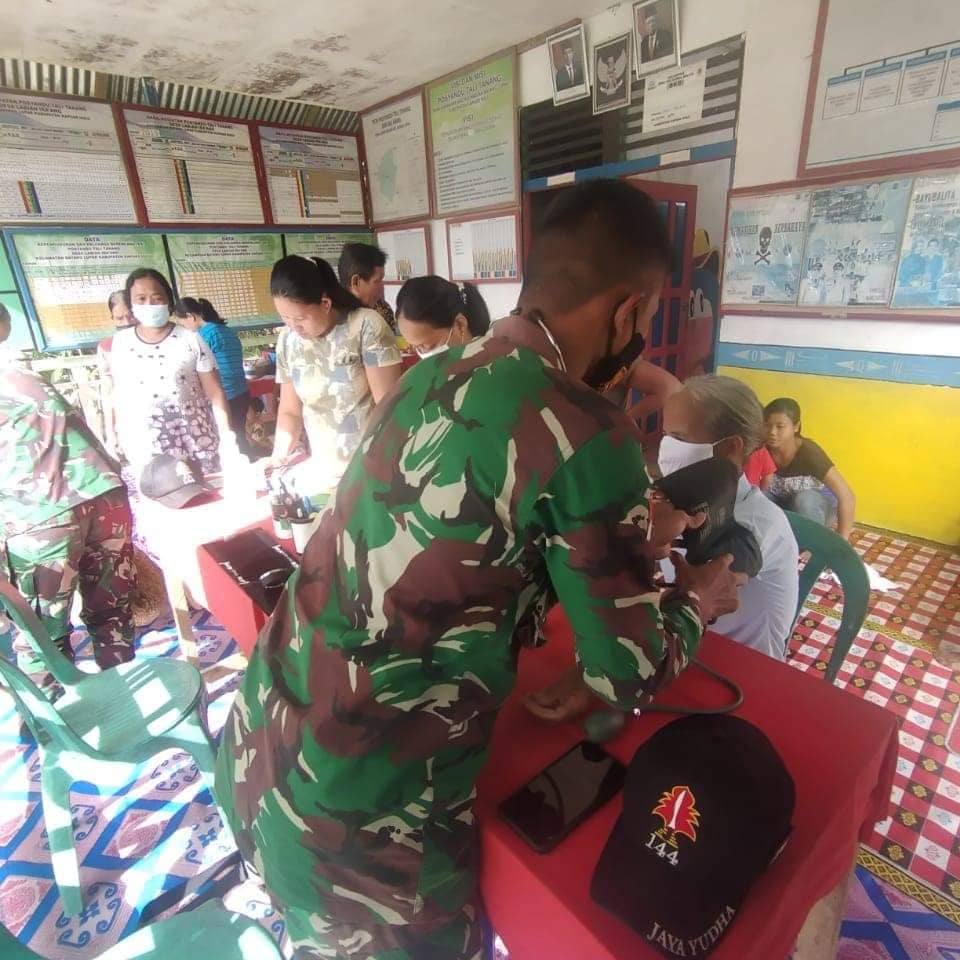 Sebelum menyerahkan ratusan Botol miras dilakukan dengan menjaga jarak, serta selalu mematuhi protokol kesehatan.(pen Yonif 144/Jy)