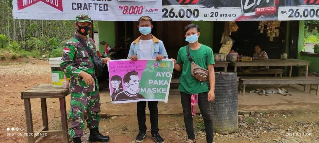 Kapaus Hulu – Koramil 1206-09/Jongkong bersama satgas Covid 19 Desa Sira melaksanakan penyemprotan desinvektan di Simpang Mawan Pengkadan -Jongkong Desa Sira Jaya Kecamatan Pengkadan Kabupaten Kapuas Hulu, Jum’at, (06/08/2021).