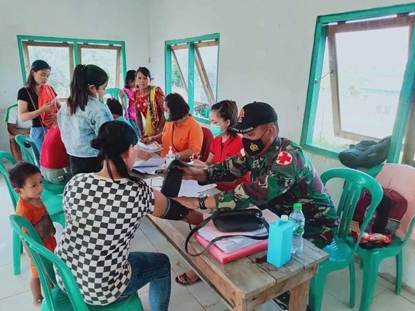 *Serbuan Vaksinasi anggota Satgas Yonif 144/JY bersama Nakes Puskesmas di Perbatasan*
