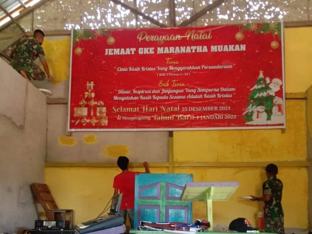 Sebagai wujud kepedulian dan mewujudkan toleransi antar umat beragama di perbatasan seperti yang dilakukan oleh anggota Satgas pos Muakan Petinggi bersama warga dalam pengecatan Gereja GKE Maranatha.