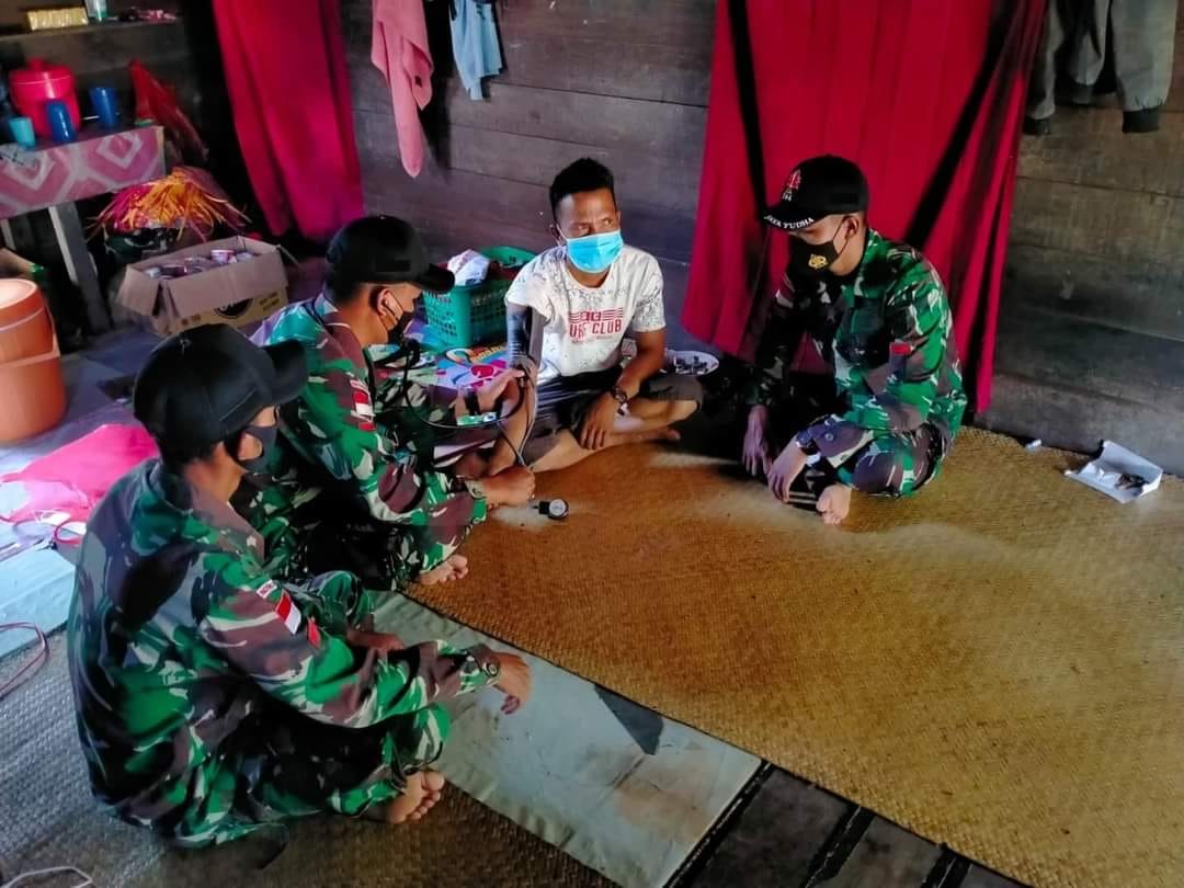 Pratu Arif Rahman beserta tiga rekannya”,Kami bagikan masker ke rumah warga dengan menyambangi rumah serta mensosialisasikan tentang pentingnya mematuhi protokol kesehatan, laksanakan pengobatan gratis dengan menyambangi rumah ke rumah”, imbuhnya.