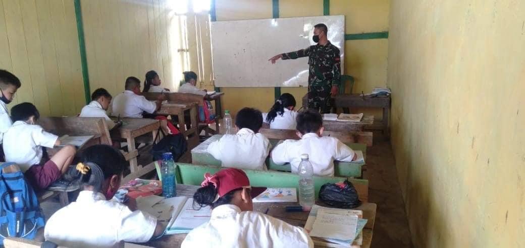 Pratu Julius beserta dua rekannya”,Kami mengajarkan materi Bahasa Indonesia dan menanamkan nilai-nilai Patriotisme serta wawasan kebangsaan”, harapannya anak-anak SDN mini bisa berprestasi meskipun tinggal di perbatasan”, pungkasnya.