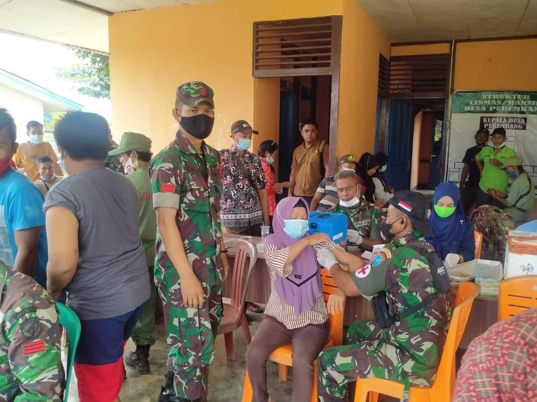Sintang – Dalam rangka mendukung kegiatan Serbuan Vaksinasi dan memutus mata rantai penularan Covid-19, Babinsa Koramil 1205 – 07/Sintang, Praka Iksan Setiawan melaksanakan pendampingan vaksinasi Covid-19 Dosis pertama dan kedua kepada warga Desa Parembang, Kecamatan Sungai Tebelian, Sintang yang dilaksanakan di Balai Desa Parembang, Jumat(14/01/2022).