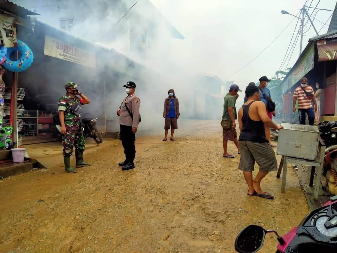Sintang – Guna mengantisipasi wabah penyakit Demam Berdarah Dengue (DBD), Babinsa Koramil 09/Ketungau Tengah bekerjasama dengan Forkopimcam Ketungau Tengah melaksanakan penyemprotan asap /Fogging ke rumah – rumah warga dan pasar di Desa Wirayudha, Kecamatan Ketungau Tengah, Sintang pada Sabtu pagi (15/01/2022).
