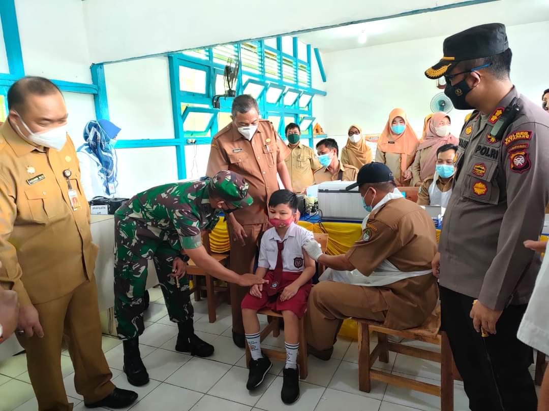 Ketapang – Dandim 1203/Ktp Letkol Inf Alim Mustofa menghadiri kegiatan launching vaksinasi covid-19 bagi anak usia 6-11 tahun Di kota ale-ale Ketapang yang berlangsung di SD Negeri 07 Delta Pawan, Jalan Ade Irma Suryani No.7, Kecamatan Delta Pawan, Kabupaten Ketapang, Selasa (18/1/2022).