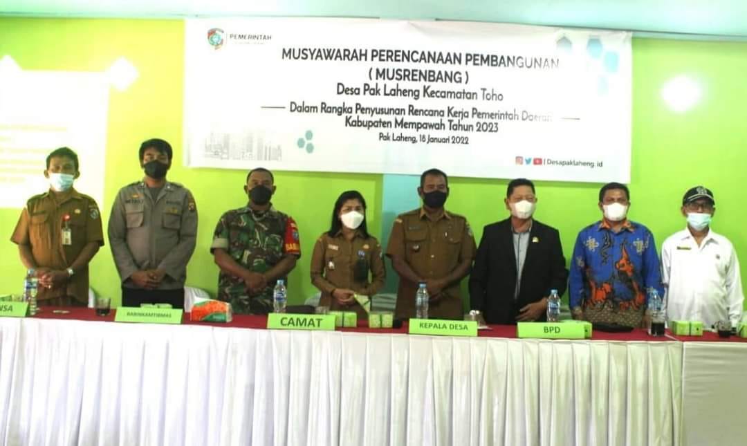 Mempawah – Babinsa Koramil 05/Toho jajaran Kodim 1201/ Mph, Serda Sardi Kusuma, menghadiri undangan Musyawarah Rencana Pembangunan Desa (Musrenbang Des) dalam rangka Penyusunan rencana Kerja Pemerintah tahun 2023, di gedung PNPM Serbaguna, Dusun Pak Laheng, Desa Pak Laheng, Kecamatan Toho, Kabupaten Mempawah, Selasa(18/1/2022).