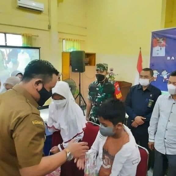 Dandim juga berpesan kepada orang tua harus mendampingi anak-anaknya supaya tidak takut disuntik Vaksin Covid-19, dan juga tetap mematuhi protokol Kesehatan