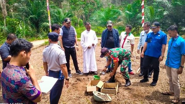 Melawi – Sebagai tanda awal dimulainya pembangunan Gereja Katolik ST Gabriel Stasi Sokan, Babinsa Koramil 1205-15/Sokan Hadiri peletakan batu pertama. Minggu ( 30/01/2022 ).