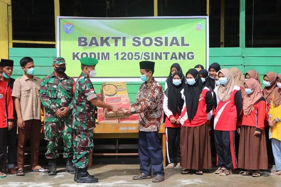 Selain melakukan sosialisasi, Kodim 1205/Sintang juga melaksanakan Bakti Sosial dengan memberikan bantuan berupa sembako kepada Ponpes Agropolitan Nurul Ma’arif Sintang.