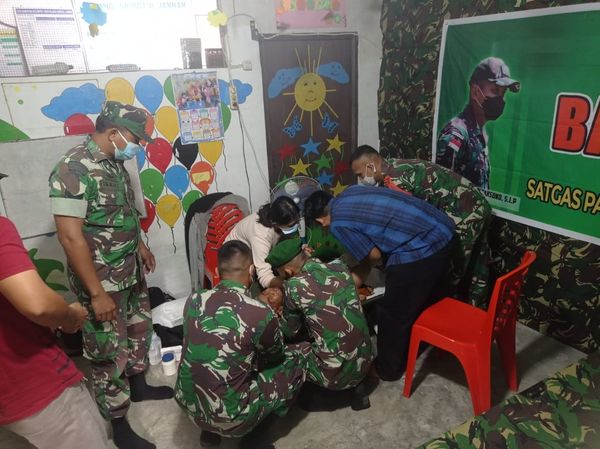 Sertu I Nengah Santika dalam pedampingan kegiatan tersebut untuk memberikan motivasi dan menenangkan anak-anak yang risau dan gelisah ketika hendak akan dilaksanakan penyunatan, ucapnya.