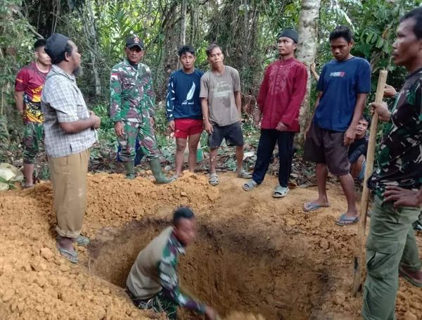 Sei Beruang,-Anggota Satgas Pamtas RI-Malaysia Yonif 144/JY membantu Pemakaman Warga di desa Sei Beruang Kecamatan Sekayam Kabupaten Sanggau Kalbar.
