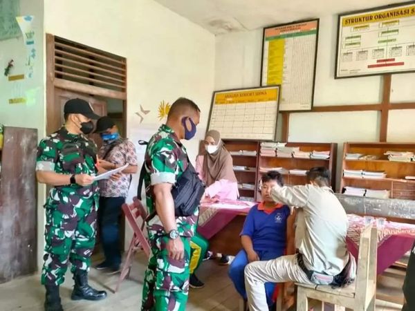 Pendampingan pelaksanaan vaksinasi covid-19 untuk anak usia 6-11 tahun ini sebagai upaya mendukung program percepatan vaksinasi yang dicanangkan pemerintah, khususnya diwilayah kerja Koramil 1203-01/Nanga Tayap,” ungkap Sertu S. Hutagalung disela kegiatan.