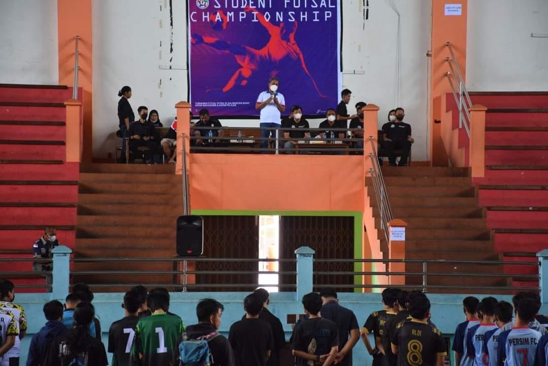 Sintang – Komandan Kodim 1205/Sintang yang di wakili oleh Perwira Seksi Teritorial (Pasiter), Kapten Inf H. Didik Heru Pamungkas menghadiri pembukaan Turnamen Futsal Putra Tingkat Mahasiswa dan Pelajar Sekali mantan Barat yang berlangsung di GOR Apang Semangai Sintang, Kalimantan Barat, Sabtu (05/03/2022).