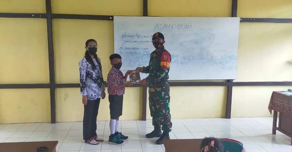 “,pendidikan di bangku sekolah dasar memang sangat penting untuk menunjang masa depan, kegiatan ini berjalan dengan lancar dan selalu mengedepankan protokol kesehatan.(Pen Yonif 144/JY).